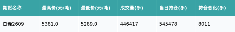 南财智讯4月16日电,盘后期货数据显示,郑州商品交易所的白糖主力合约收涨1.32%,收盘报5377.0元/吨,日内资金流入9425.76万元。其他相关指标见下表: